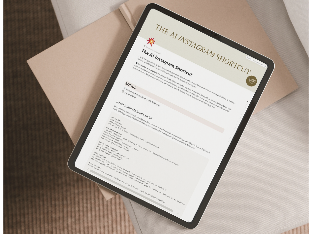 Du verbringst Stunden mit Instagram Rumgeeier vor dem leeren Bildschirm. Am Ende bist du nur drei halbherzige Posts weiter. Mit dem AI INSTAGRAM SHORTCUT planst und erstellst du eine Woche Content in einer Stunde - mit fertigen KI Prompts die dir die Arbeit abnehmen.